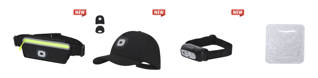 • Lanyards, gorras, mochilas plegables, linternas, cantimploras